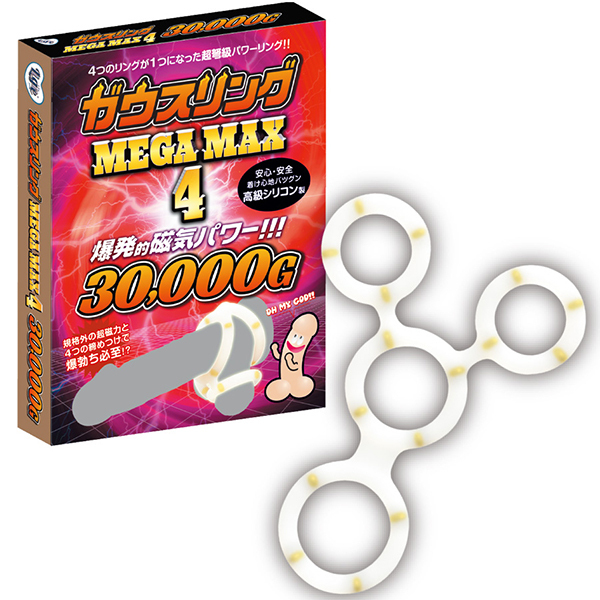 このメガマックス4は30.000ガウスのモンスターリングです!しかもこのガウスを竿、タマ、根本と4つのリングで完全固定し、爆発的なパワーで立ち上げ!!全てのリングに磁石が入っており、男根全体がみなぎるパワーを受けることに!しかもリングの締め付けも相まって、最高磁力、締め付け=爆立ち!!最高の結果へ導くスペシャルなリングなのです!言うまでもなく業界最大の磁力を実現。