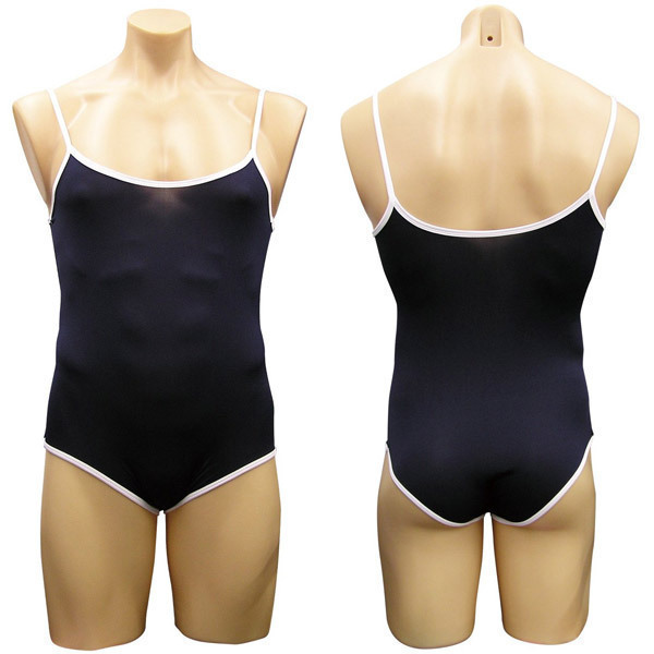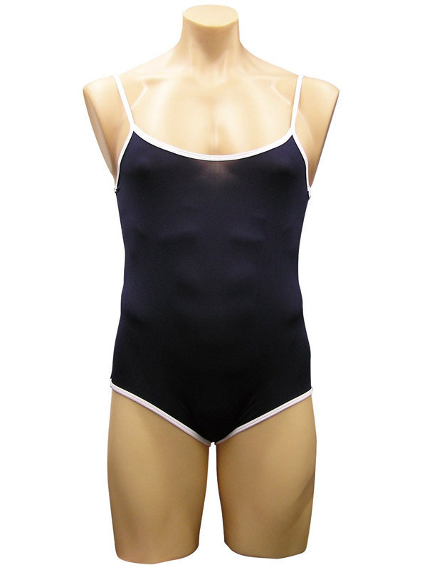 紺カラーを基調とした白パイピング入りのデザインは、どこからどう見ても女性用そのもの!お肌にピタッとフィットする感じがたまらなく、女装好きの男性心をくすぐります。