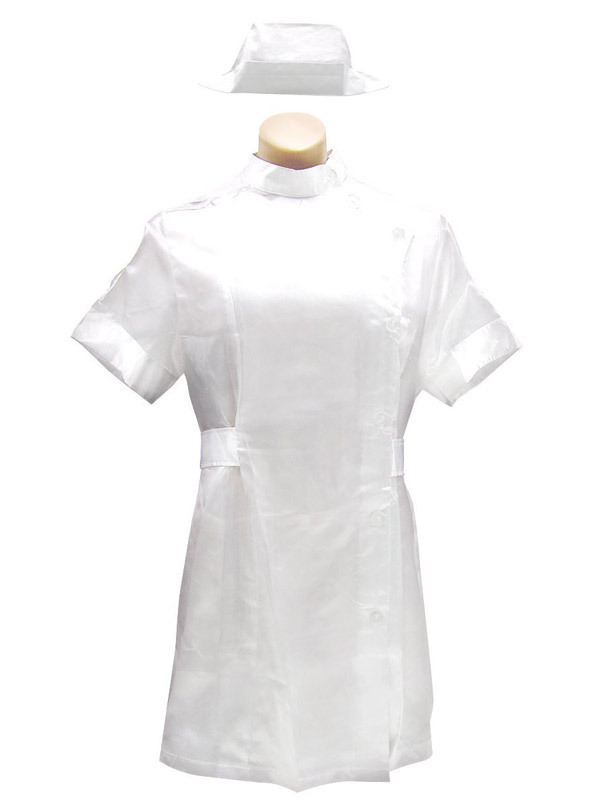 フリーサイズ(メンズ) マネキン:胸囲97cm・胴回り75cm・腰周り95.5cm セット内容:ワンピース・ナースキャップ パッケージ:35.5×25.0×5.5cm