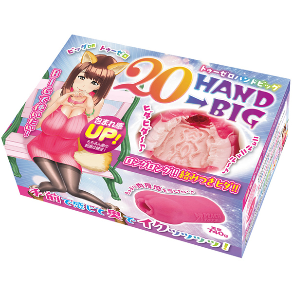 人気の20HANDをベースに、大きなサイズでリッチな使用感を追求した非貫通オナホールです♪「肉厚でしか味わえない使用感」をコンセプトに設計され、高弾力素材による包まれる感触とまったり楽しめる内部構造を実現しています!入口部分は丸く使いやすく、薄いサクラ色の柔らかい素材が3分の2までのエリアを包み込んでいます♪絡みつく縦ヒダがメインの構造で、柔らかい触感を楽しむことができます!奥の部分には、濃いピンク色のしっかりとした刺激素材を採用し、フィニッシュに向けての役割を強化♪「手前で遊んで、奥でフィニッシュ」というテーマは従来のモデルと同じながら、このBIG版では奥の弾力をより深く感じられる設計です!日本製の高品質で、特別なリフレッシュタイムを提供します♪